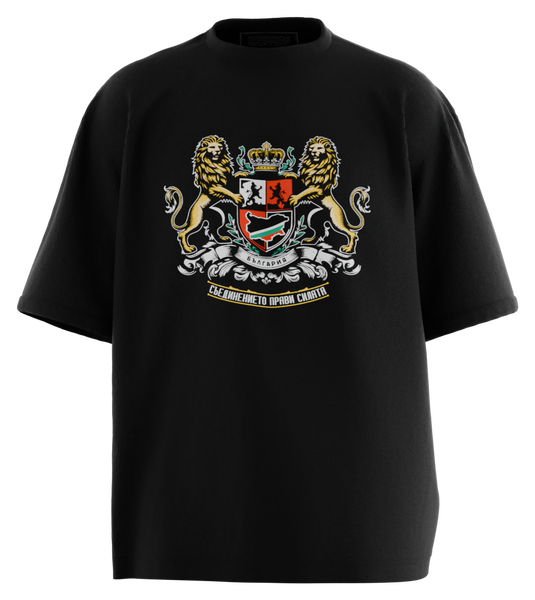 Тази тениска носи духа на една от най-важните глави в българската история – Съединението на Княжество България и Източна Румелия. Дизайнът включва символичен герб, пазен от величествени лъвове – олицетворение на националната идентичност и единство.
