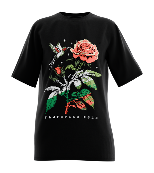 Дамска Oversized тениска "Българска Роза" – Красотата на България е навсякъде!