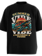Щампата е изпълнена с ярки, лятни цветове, които привличат вниманието и са устойчиви на многократни изпирания, благодарение на директния печат върху материята. С класическото обло деколте и свободната oversized кройка, тази тениска осигурява стил и комфорт, като същевременно позволява на кожата да диша в горещите дни.